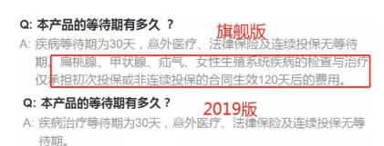 在常見問答中,升級(jí)后的2019版不再對(duì)扁桃體、甲狀腺、疝氣、女性生殖系統(tǒng)疾病的檢查與治療設(shè)定理賠時(shí)間限制。