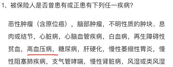 這種詢問涉及面就非常廣了,雖然它沒有詢問點名詢問高血壓,但不僅是高血壓,其他所有的病癥通通要告知于保險公司,可以說是非常嚴格了。