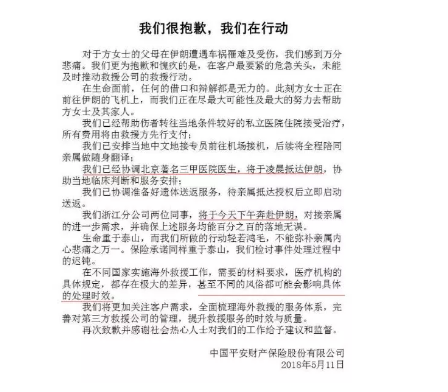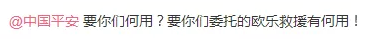 請問,楊女士尚在國內(nèi),她從何處得知遠在伊朗的信息!在憤怒之下,楊女士發(fā)出這樣的怒吼:“@中國平安 要你們何用?要你們委托的歐樂救援有何用!”