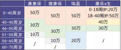 我們來看一下其他幾款產(chǎn)品的最高保額設計: