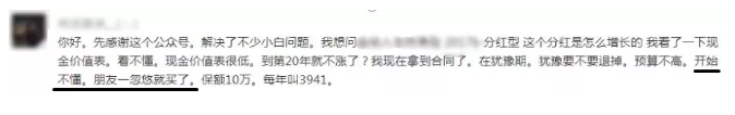 業(yè)務(wù)員:誰家賺點錢都不容易,買個保險沒生病錢不就白花了么?!這款產(chǎn)品的分紅很可觀,來我給你算一下看看……