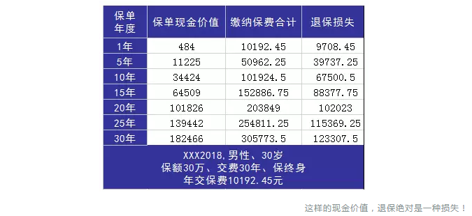 但是現(xiàn)在市面上大部分的重疾險,現(xiàn)金價值是遠(yuǎn)低于已交保費的。比如這位朋友被推銷的,某熱銷產(chǎn)品XXX2018,其現(xiàn)金價值表如下圖