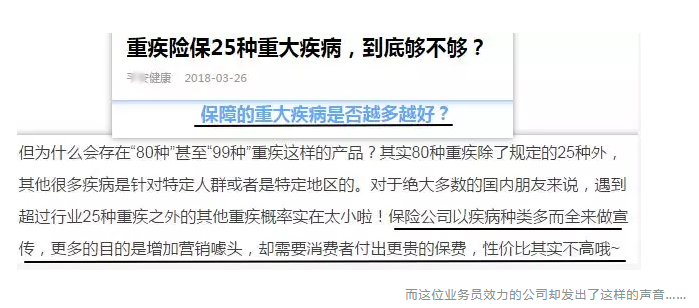 更別說這位業(yè)務(wù)員自己公司的公眾號也曾發(fā)文稱:25種重大疾病就夠了。這些業(yè)務(wù)員朋友為了出單,連自己公司說的話都不認(rèn)了啊!