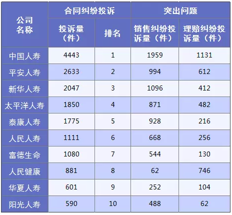 除了人民健康以外,其他保險(xiǎn)公司都有一個(gè)共同點(diǎn):銷售糾紛投訴量遠(yuǎn)高于理賠糾紛。
