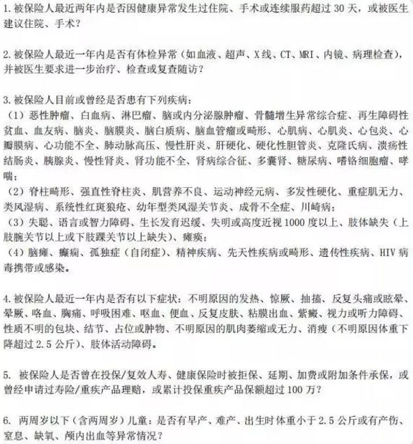 比如“兩年內(nèi)的一般門診”沒有問到,而只是詢問是否因健康異常而住院或者手術(shù)或者被建議住院或者一年內(nèi)的體檢。