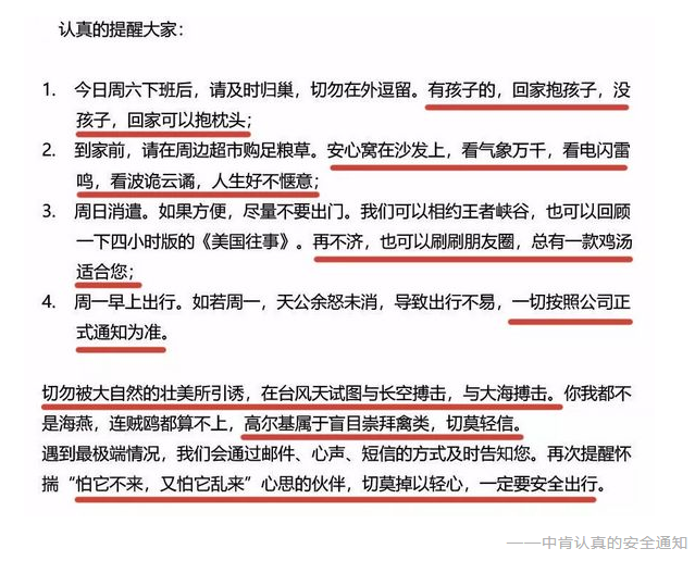 這份“嚴(yán)肅認(rèn)真”的安全通知告訴我們,面對”山竹“這類災(zāi)害我們要注意這幾點(diǎn):