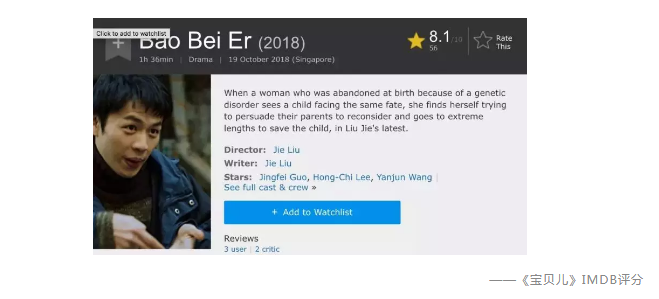 而在國(guó)外,這部影片入多倫多電影節(jié)“特別展映”單元,在IMDB的評(píng)分卻達(dá)到了8.1分(《我不是藥神》不過(guò)也只有8.2分)
