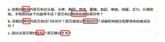 被保險(xiǎn)人既往史:即客戶本人患病、治療及目前狀況;