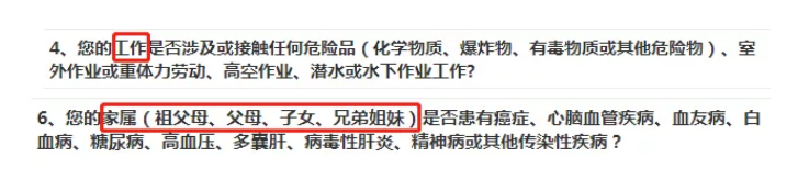 被保險(xiǎn)人家族史:即其父母或直系親屬中是否有家族遺傳性疾病。