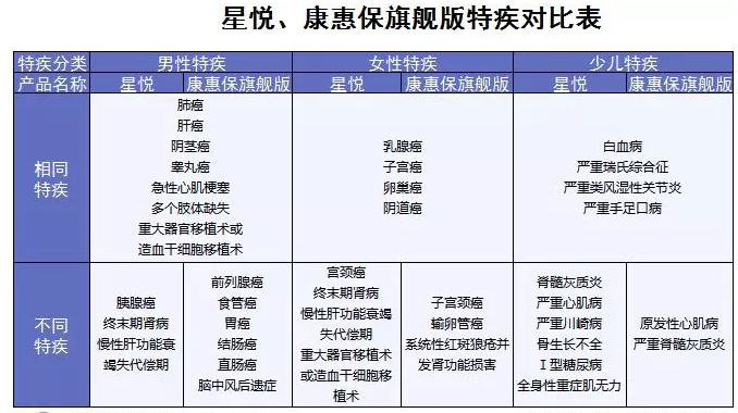 看得出來,雖然都有特定疾病額外賠付,但星悅和康惠保旗艦版還是有些差異的。