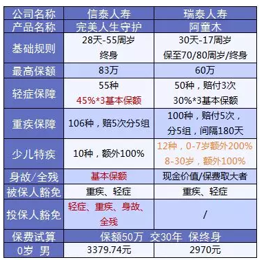 價(jià)格上完美人生守護(hù)雖然比阿童木貴了400元,但是保障上多了輕癥45%保額的賠付、身故保障以及投保人豁免保障。