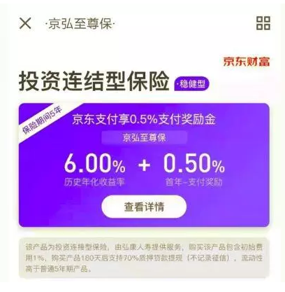 如果風(fēng)險承受能力較高,并且對流動性有一定要求,京東金融上面還有6%的投資連結(jié)保險。