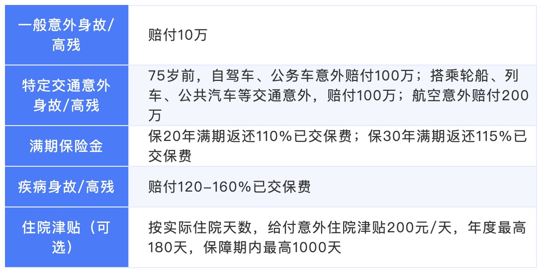 例如,中國x壽的百萬如意行長期意外險,產(chǎn)品名稱說的百萬只是針對交通意外身故和高殘才有,而對應(yīng)其它更多意外情況的一般意外和高殘,保額只有10萬。