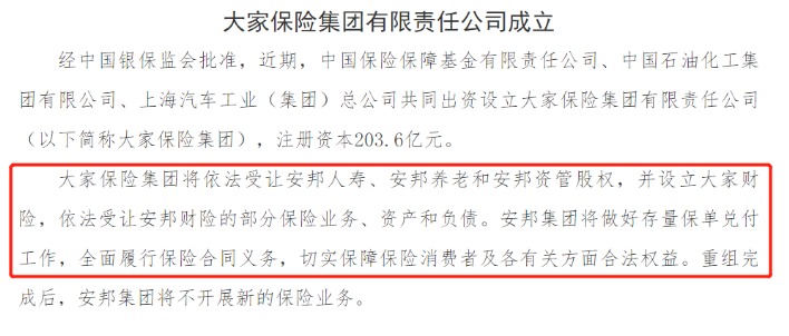 所以安邦人壽被接管,然后大家保險集團接手安邦人壽。