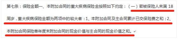 上邊的條款簡(jiǎn)單來(lái)說(shuō)就是:18歲之前得大病,不賠錢(qián),只退保費(fèi)?。。?/span>