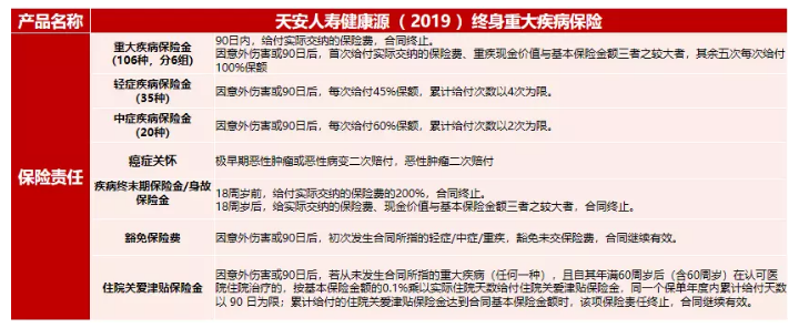 天安人壽保險健康源2019終身重大疾病保險的保險責(zé)任如下: