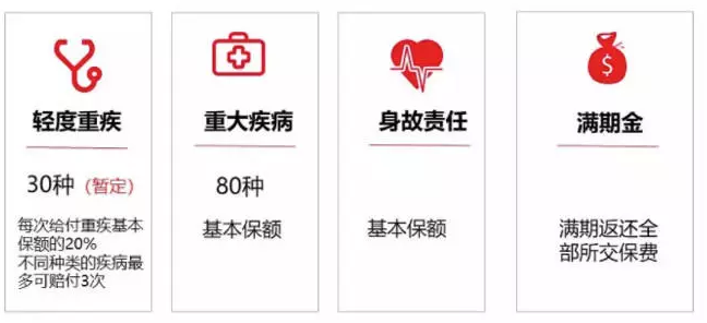 如果在保障期間發(fā)生嚴(yán)重疾病或死亡,賠付保額,則合同結(jié)束;如果在保障內(nèi)沒有嚴(yán)重疾病或死亡,則返還的所有保費都被返還。