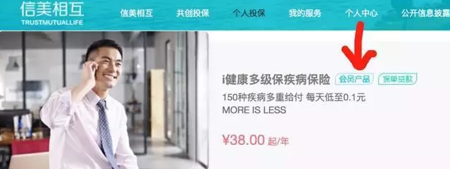 信美產(chǎn)品的官方網(wǎng)站成員將標(biāo)有特殊標(biāo)簽,而其他一年醫(yī)療保險(xiǎn)和意外險(xiǎn)都是非會(huì)員產(chǎn)品。