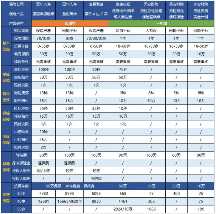我們要知道,其實只要購買了足夠的保額,其實保障都是購的,特別是對于我們普通人來說,基本上就可以應對大病帶來的風險。但是,家里有這么么一個人是家庭里面最重要的,他負責得了家庭的主要經濟來源,那就是孩子的爸爸、妻子的丈夫了。男性里面也存在特定保險,有些人為了保險的針對性,會對男性特別投保一份額外的保險。多保魚通過搜索,發(fā)現了以下的幾款產品: