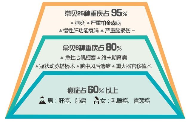 在保費差別不大的情況下,毫無疑問保障的疾病數(shù)量肯定是越多越好。但是客觀來說,重大疾病的數(shù)量完全不需要在意,原因很簡單,下圖是高發(fā)重大疾病的情況: