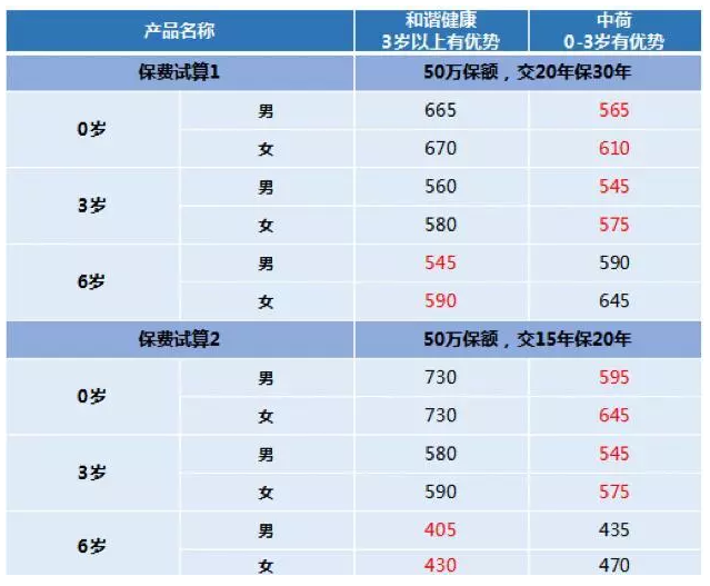 3.在費(fèi)率上,中荷童樂保對于0-3歲更有利,3歲后慧馨安相對便宜,它是值得關(guān)注的產(chǎn)品。