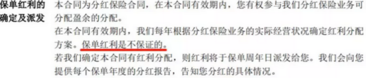 分紅保險(xiǎn)合同也明確規(guī)定,保單獎(jiǎng)金不能保證。