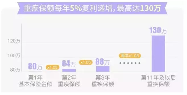 大黃蜂2號重疾險(xiǎn),通貨膨脹對保額的影響也被考慮在內(nèi)。隨著孩子長大,保額會(huì)長大。幾年或幾十年后,不要擔(dān)心現(xiàn)在購買的保額是不夠的!