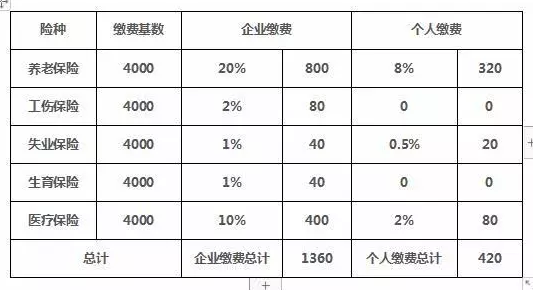 在這個問題上,我們做一個假設。假設一個人的月養(yǎng)老金支付基數(shù)為4000,按照一般比例支付的費用如下: