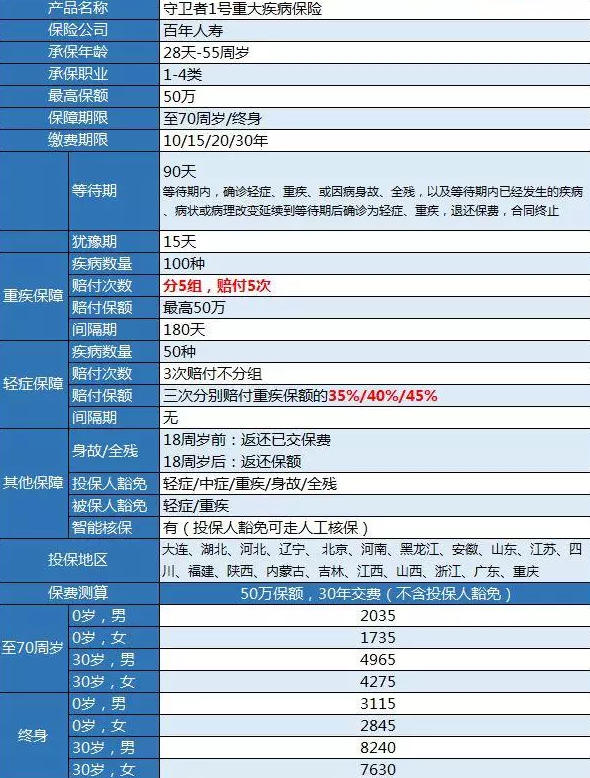 百年人壽守衛(wèi)者1號多次賠付重疾險怎么樣