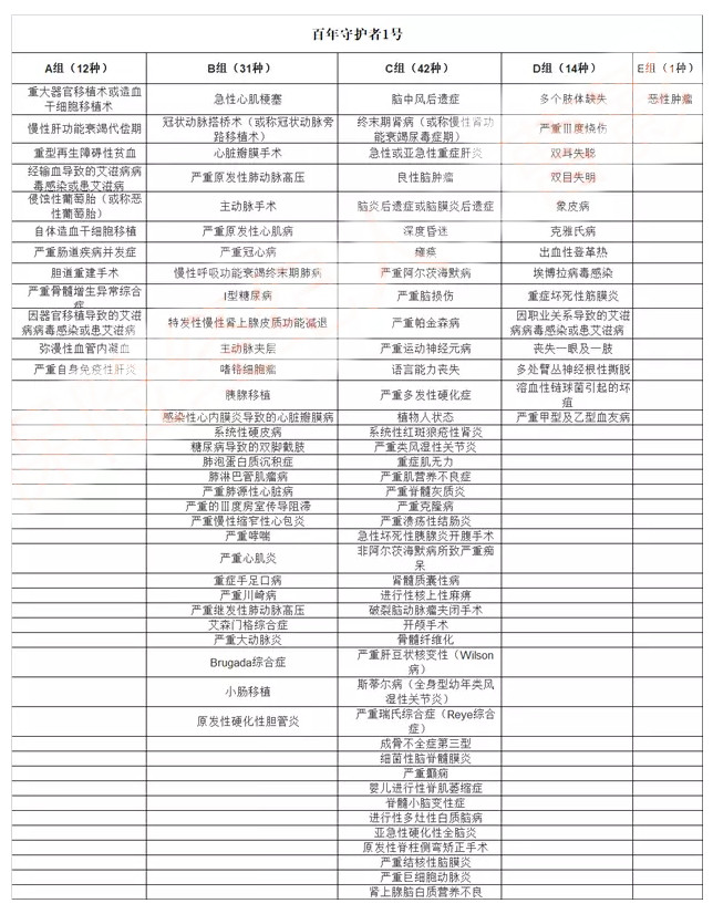所以要獲得多次賠付保額,重疾分組非常重要,讓我們看看守衛(wèi)者1號(hào)是如何分組: