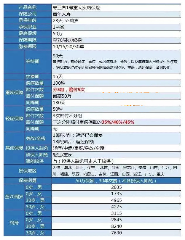 百年人壽守衛(wèi)者1號(hào)重疾險(xiǎn)保障內(nèi)容分析