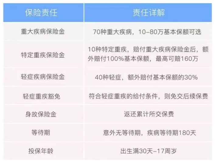 40種輕癥,賠付30%保額,最高可以賠付24萬,而且還免除了后續(xù)保費(fèi),更加人性化。