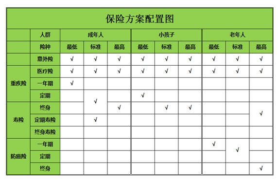 對于家庭配置,先列舉一個整體的保障配置表格: