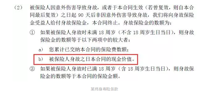 在這款保險(xiǎn)產(chǎn)品里,如果被保人身故時(shí)未滿18歲,則在已繳保費(fèi)和現(xiàn)金價(jià)值中取較大者。