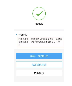 雖然乳腺疾病責(zé)任免除了,但是其他疾病還可以正常投保,其實(shí)對(duì)于消費(fèi)者來(lái)說(shuō)已經(jīng)非常友好了。