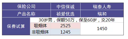 可以看出,禎愛優(yōu)選吸煙人群的保費相較于非吸煙體多了一倍。