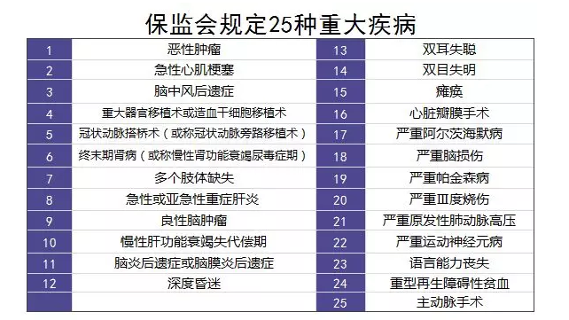 保監(jiān)會(huì)規(guī)定重疾險(xiǎn)產(chǎn)品必須包含的25種重大疾病,已經(jīng)涵蓋了絕大多數(shù)常見疾病,占重疾險(xiǎn)理賠的95%左右。而保險(xiǎn)公司把其他的不常見疾病添加進(jìn)來,提高到上百種,也不過是錦上添花,理賠重心仍在保監(jiān)會(huì)規(guī)定的25種重大疾病里。