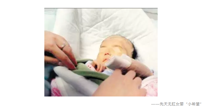 2010年年初,天津一名女嬰降生后被發(fā)現(xiàn)患有肛門閉鎖、多發(fā)瘺、腎積水、心臟卵孔未閉等畸形。