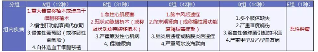 表格中標(biāo)紅的6種疾病為比較高發(fā)的重疾,從分組上來(lái)看,算是比較合理的。