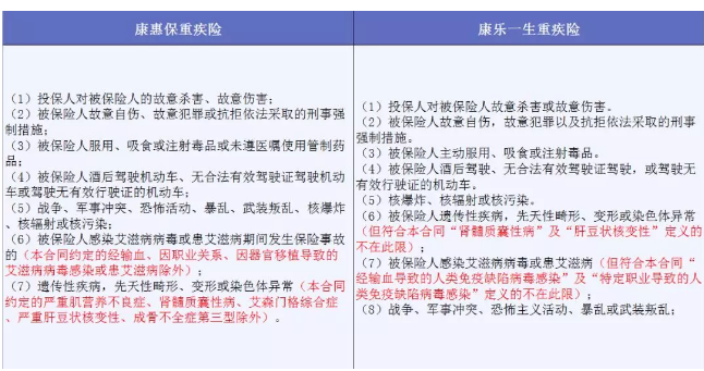 綜上,康惠保重疾險的責(zé)任免除要優(yōu)于康樂一生重疾險。