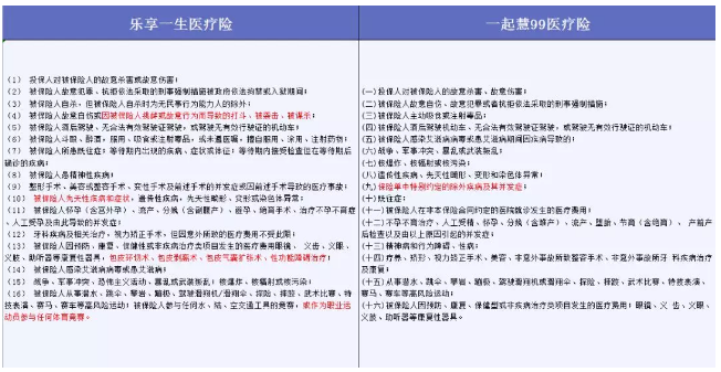 綜上,在責(zé)任免除方面,一起慧99醫(yī)療險比樂享一生醫(yī)療險略有優(yōu)勢。
