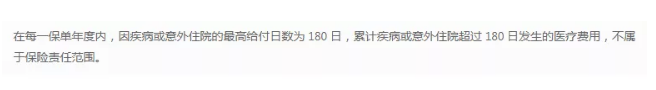 1年有365天,條款里只注明報銷180天,反過來說,剩下185天的醫(yī)療住院費用就不在報銷范圍內(nèi)了。