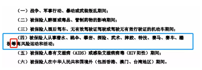 (當然問了也沒啥用,因為“等”字意味著“無限”,只要能認定為高風(fēng)險運動,都可以算免責(zé))
