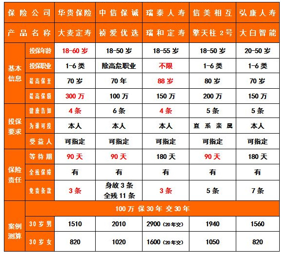 如果買保障期限長的: 就選擇瑞泰瑞和定壽,可以保障到88歲。