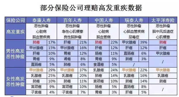 這是部分保險(xiǎn)公司高發(fā)重疾的理賠數(shù)據(jù),可以看得出: