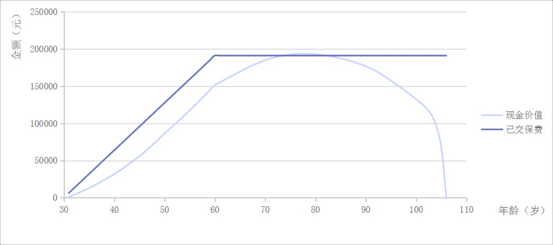 附加身故賠的已交保費(fèi),和不附加身故賠的現(xiàn)金價(jià)值相比,并沒(méi)有高多少。
