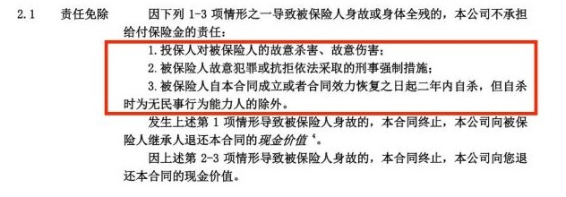 它只對故意殺害、傷害行為,犯罪和2年內(nèi)的自殺有免責要求。對吸毒、酒駕、暴亂、核輻射等都沒有免責的要求。