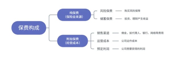 保費=風(fēng)險保費+儲蓄保費+銷售渠道費用+運營成本+預(yù)定利潤。