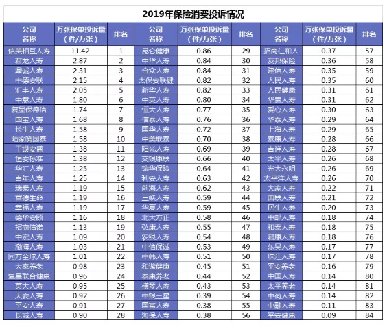 而在投訴排名靠后的那些公司中,我相信大部分大家都沒聽過,比如中荷人壽、和泰人壽,萬張保單投訴量分別只有0.14、0.18,并不比最低投訴量0.09差多少。