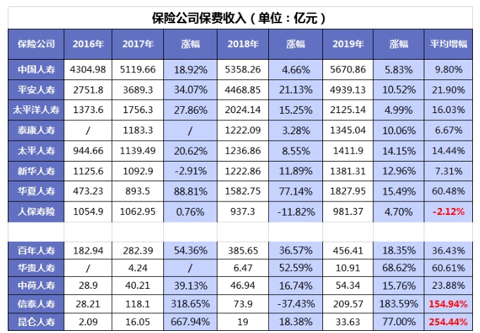 這可不是紅口白牙胡咧咧,一些公司最近幾年的保費收入增長,已經(jīng)很能說明問題了。